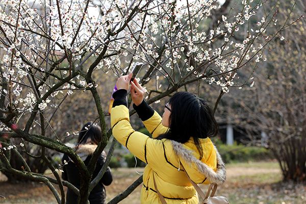 梅園一隅,此刻卻是那般的熱鬧、繁華;êH缬,鳥語陣陣。梅花俏枝頭,桃花笑春風(fēng),海棠綽風(fēng)姿,點綴了這一方晴空;ㄩg的林蔭小道,樹下的青階石凳,耳畔的三聲鳥語,不時地引來“拍客”們的駐足。微風(fēng)過后,片片花瓣擁入了大地的懷抱,在空中跳起了妙曼的舞姿,美如仙子。不一會兒,又收起了剛才的那股子爛漫,羞羞答答地鋪滿一地。撿起一片花瓣,放在鼻間,香味濃郁,只感精神氣爽。在這春日里,捧一本好書靜坐在梅園石階下,輕嗅著花的芬芳,享受著春光爛漫該是多么美好。