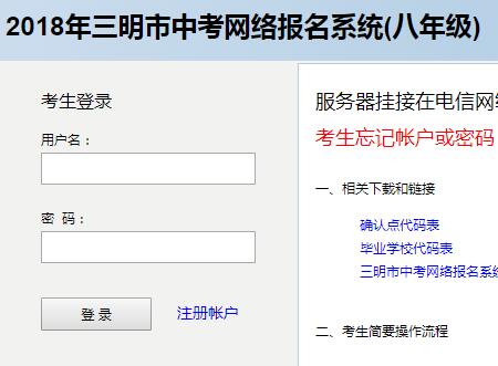 考生登錄 三明市中考網(wǎng)絡(luò)報(bào)名系統(tǒng)
