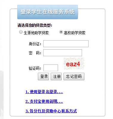 請選擇您的貸款類型:生源地助學貸款 高校助學貸款 身份證: