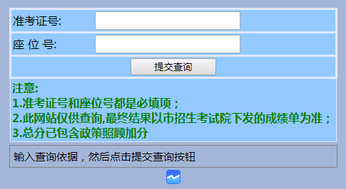 2.此網(wǎng)站僅供查詢,最終結(jié)果以市招生考試院下發(fā)的成績單為準(zhǔn);