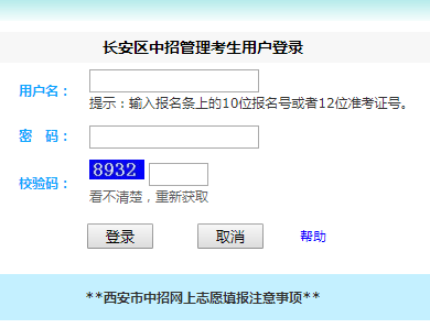 長安區(qū)中招管理考生用戶登錄