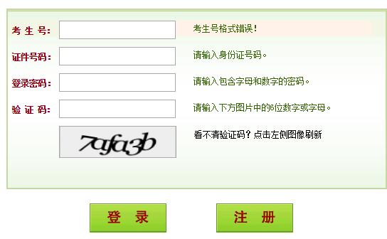 考生號格式錯誤!證件號碼:請輸入身份證號碼。登錄密碼: