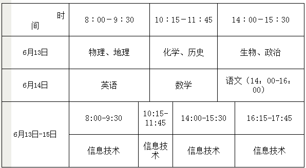 2015年6月福建省普通高中學(xué)生學(xué)業(yè)基礎(chǔ)會(huì)考時(shí)間
