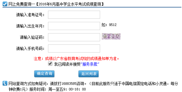 廣東省2016年6月高中學業(yè)水平考試成績查詢