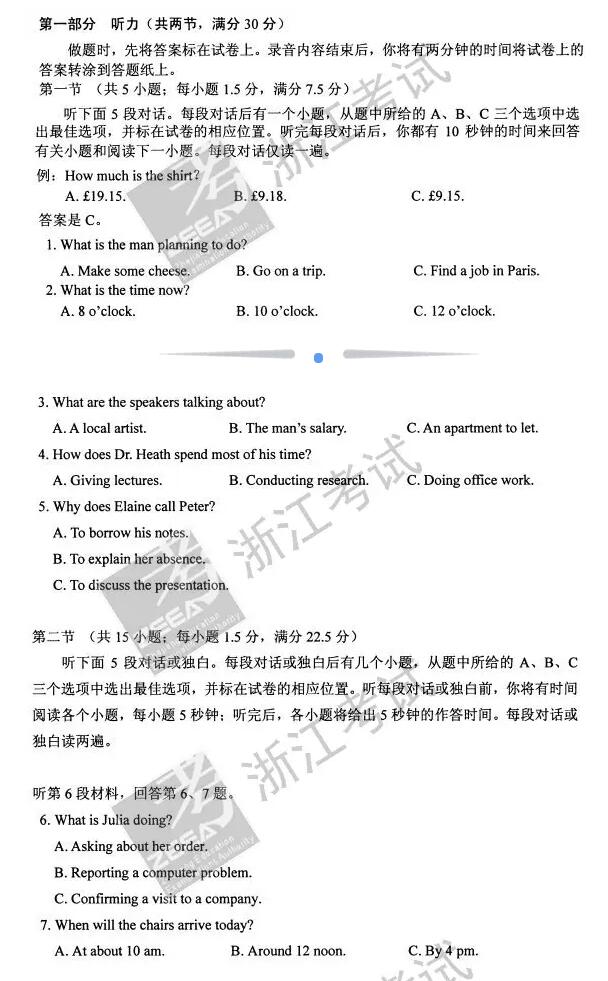 2016年10月浙江省普通高校招生選考科目考試英語試題及答案