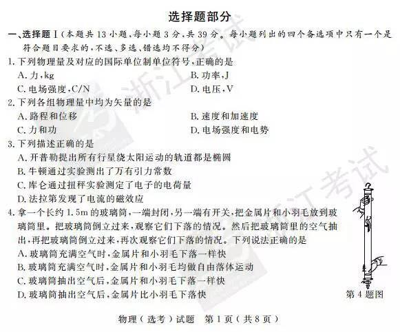 浙江省2017年4月高中學(xué)業(yè)水平考試物理試題及答案