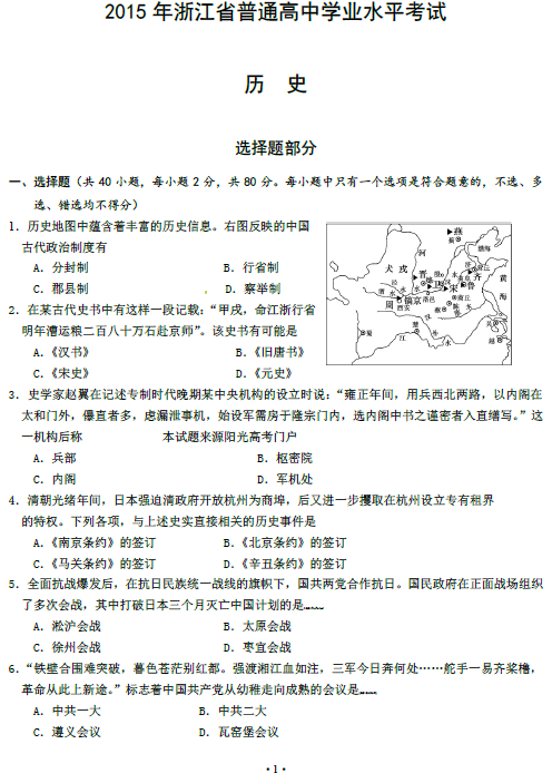 1.歷史地圖中蘊含著豐富的歷史信息。右圖反映的中國